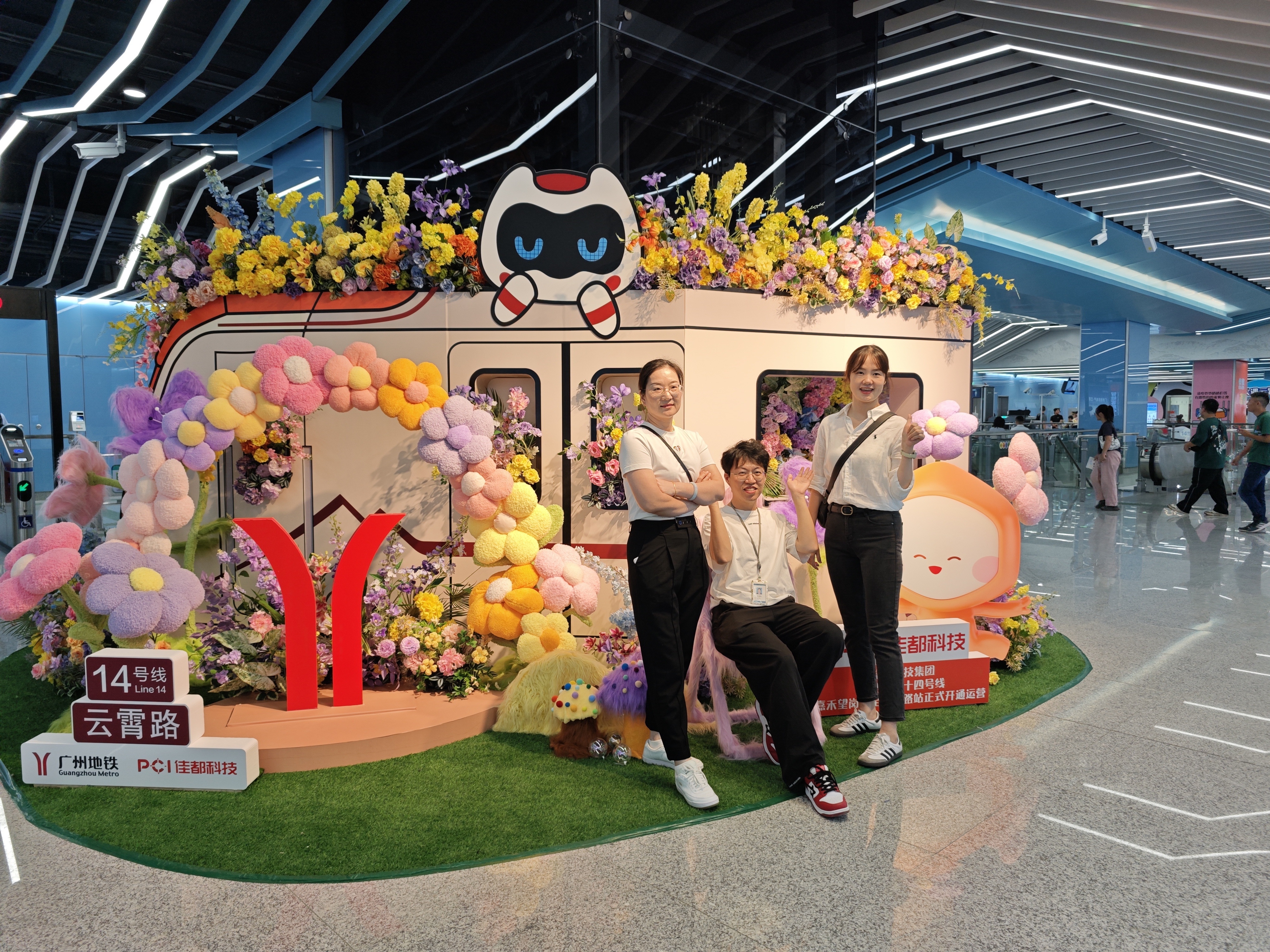 融入广府风情与沿线美景元素的花艺布置、主题摆设装点新线各车站。乐嘉路、云霄路、嘉禾望岗、车陂站设置了一站式综合服务台,明星服务队为乘客介绍新线热点信息以及乘车指引咨询服务。